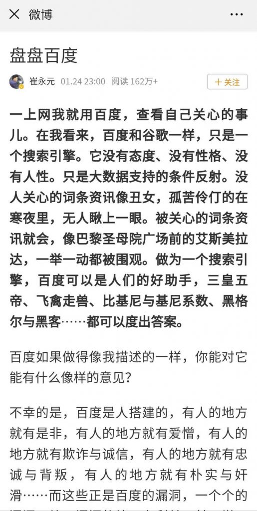 崔永元盯上了百度